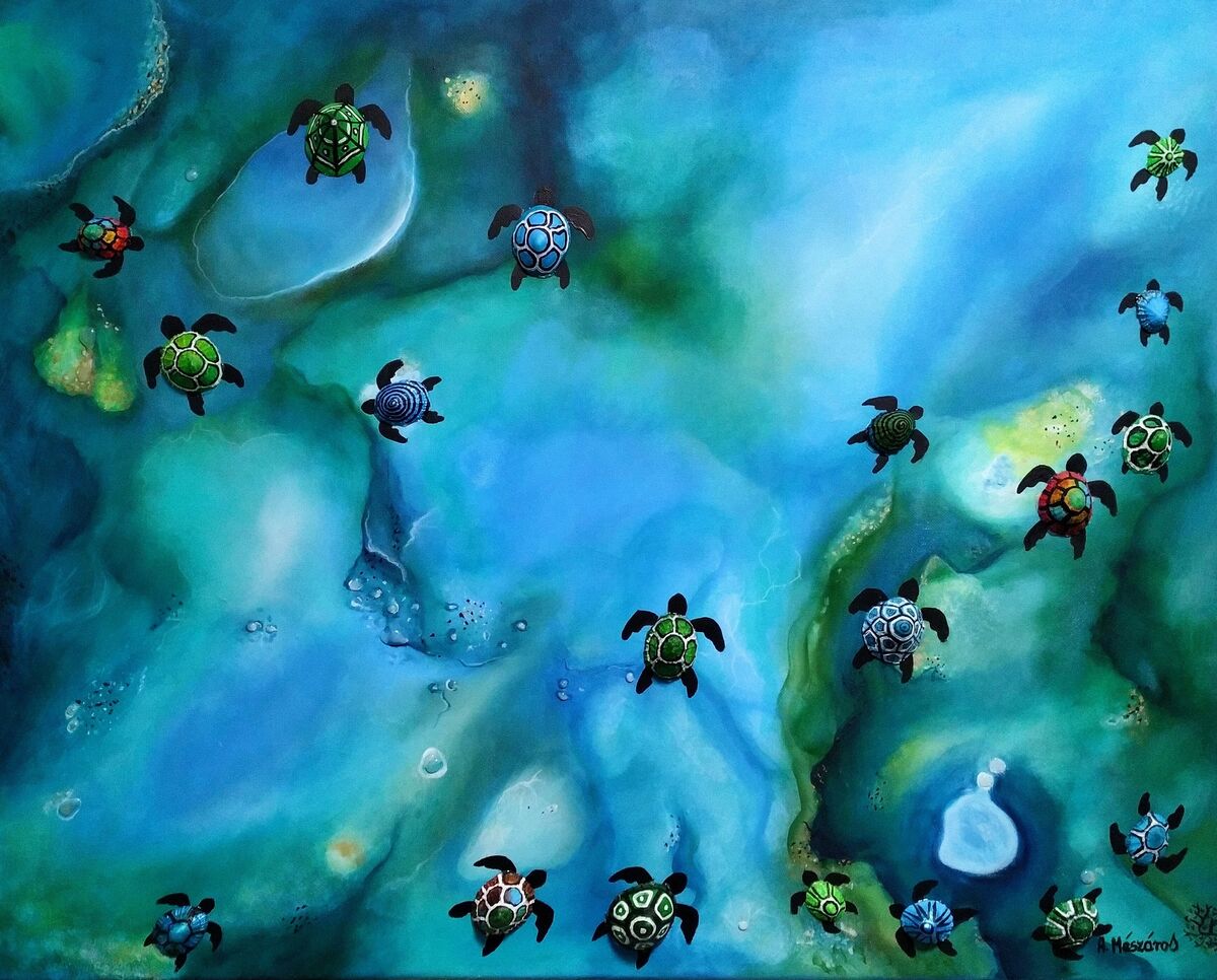 Modern Style Abstract Acrylic on Canvas with seashells 🐚